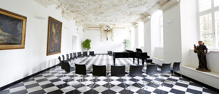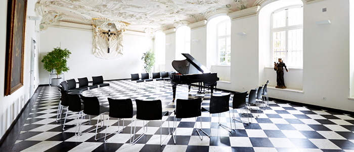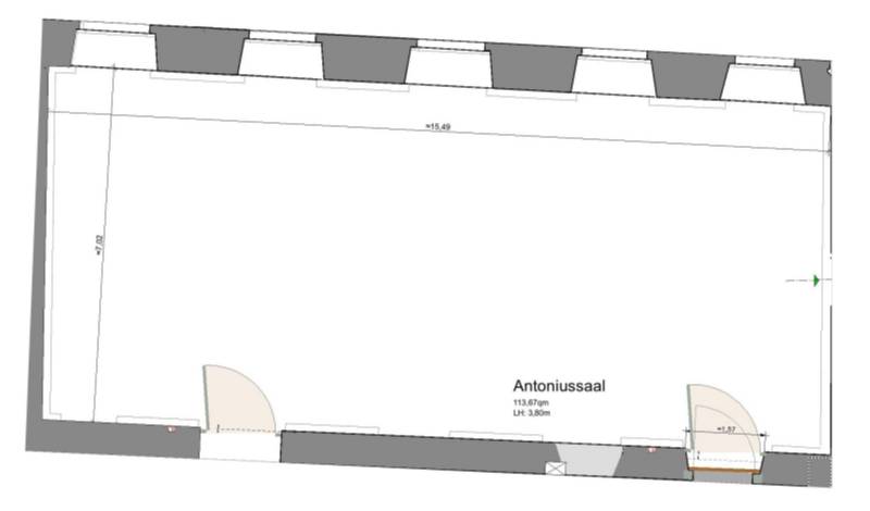 Der Antoniussaal mit seiner barocken Stuckdecke ist das ehemalige Refektorium, also der Speisesaal des Klosters. Er liegt im Erdgeschoss des Maxhauses im Südflügel und hat eine Grundfläche von 114 m².
